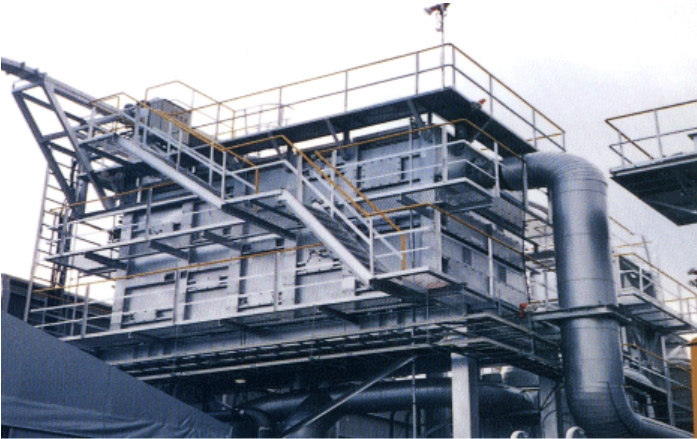 ▸ 건조실이 상하로 적층된 다단이므로 중력과 자중에 의해 폐건조물이 이송되고 부지 소요 면적이 작다.
